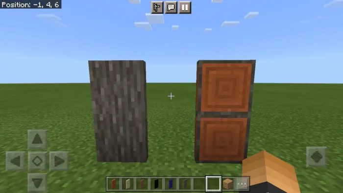 Некоторые блоки, такие как Бревна и Базальт, можно размещать горизонтально и вертикально, таким образом, эти двери имеют как боковую, так и верхнюю текстуру этого блока, поэтому вы можете выбрать любую текстуру для маскировки в разных ситуациях. По умолчанию текстура двери используется сбоку, чтобы изменить текстуру на верх, просто подкрадитесь, а затем разместите.