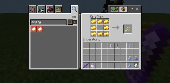 В этом моде появился новый элемент POTION TYPE. Да, вы можете пить его, но его также можно использовать для очищения Осквернённых душ. Его можно сделать, превратив воду в Wicked Potion с помощью Corrupted Soul и превратив это зелье в Holy Potion с помощью золотого яблока. Употребление Wicked Potion вызовет массу негативных эффектов, таких как увядание, медлительность, горная усталость, голод, слабость, яд, а также плохое предзнаменование. Вы можете выпить Holy Potion, если хотите, но...