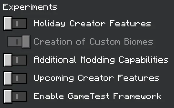Этот пакет работает на всех версиях Майнкрафт 1.17, включая бета-версии. Для работы аддона необходимы следующие экспериментальные функции: