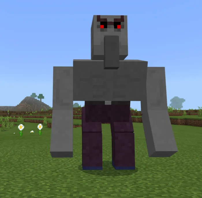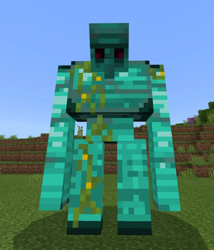 Сбрасывает 7 Алмазных блоков или Кулак Голема и синий фрагмент. Кулак Голема при атаке отправляет мобов в воздух (некоторых мобов убивает с одного удара).