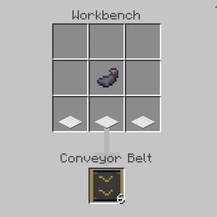 Конвейерная лента позволяет автоматически перемещать предметы, которые падают на них, в направлении их движения. Чтобы привести в действие конвейерную ленту, вам понадобится Силовой конвейер.