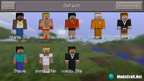 В главном меню нажмите на кнопку "Скины", чтобы перейти к разделу скинов. Выберите одну из понравившихся категорий и установите себе скин :)