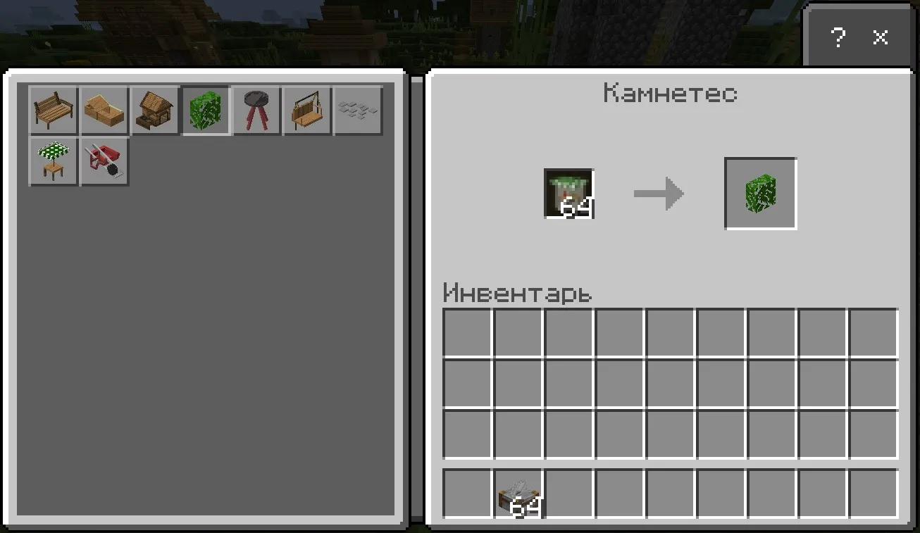 Возьмите камнетёс и положите в него новый предмет — Aeoutdoor. Вы сможете найти его в инвентаре творческого режима.
