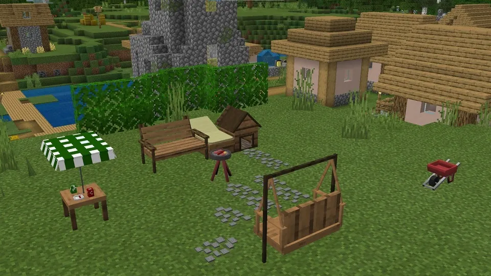 AEoutdoor представляет потрясающий мод для МКПЕ, который добавит в игру новую мебель для сада! Мод предназначен только для творчества, несмотря на то, что для получения декоративных блоков используется камнетёс.