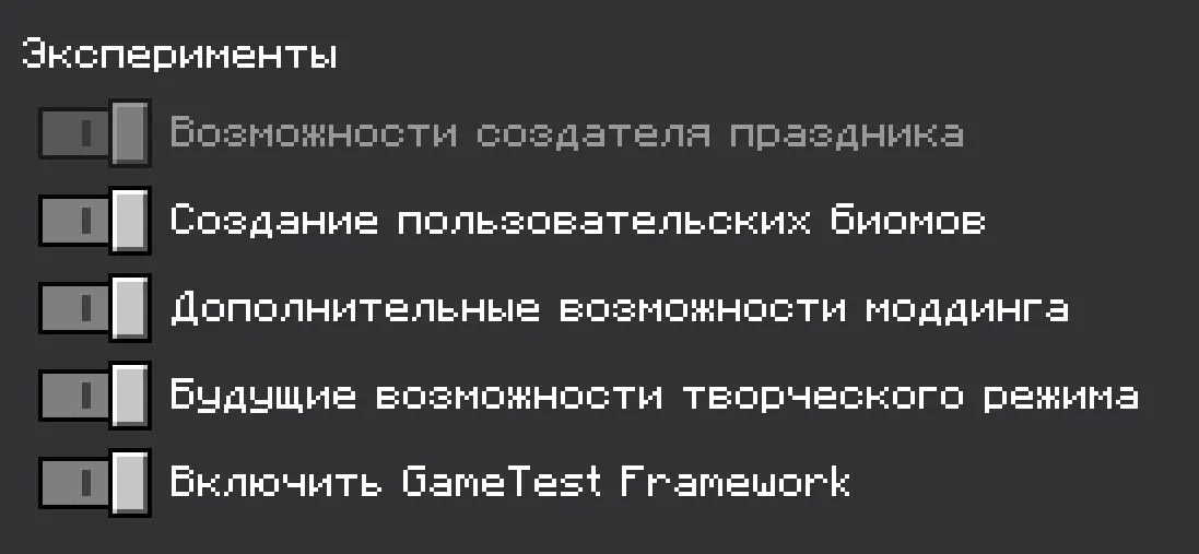 Важно! Перед созданием мира, убедитесь, что вы включили экспериментальный игровой процесс.