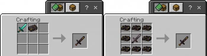 Незеритовый меч: 8 урона, 2031 прочность, 15 скорость.