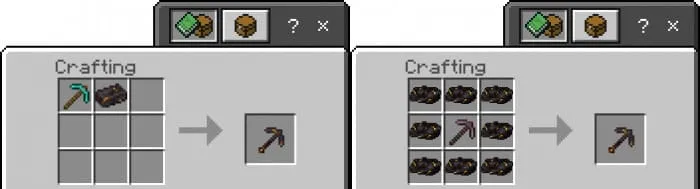 Позолоченная незеритовая кирка: 7 урона, 2539 прочности, 10 скорости.