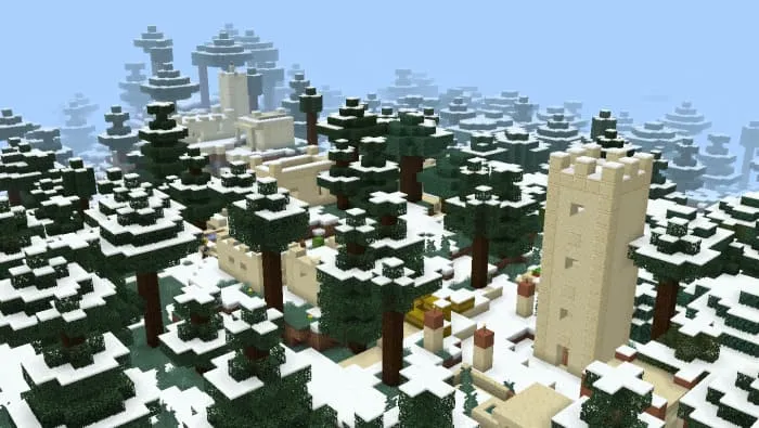 Ниже представлены скриншоты того, как выглядит аддон «Snowy Taiga World».