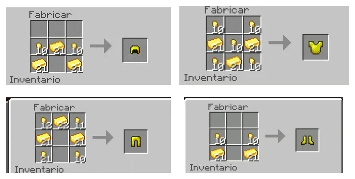 Усиленная золотая броня. Эта новая усиленная золотая броня слабее алмазной, но прочнее железной. Крафт этой брони состоит из золотой кольчужной брони и золотых блоков.