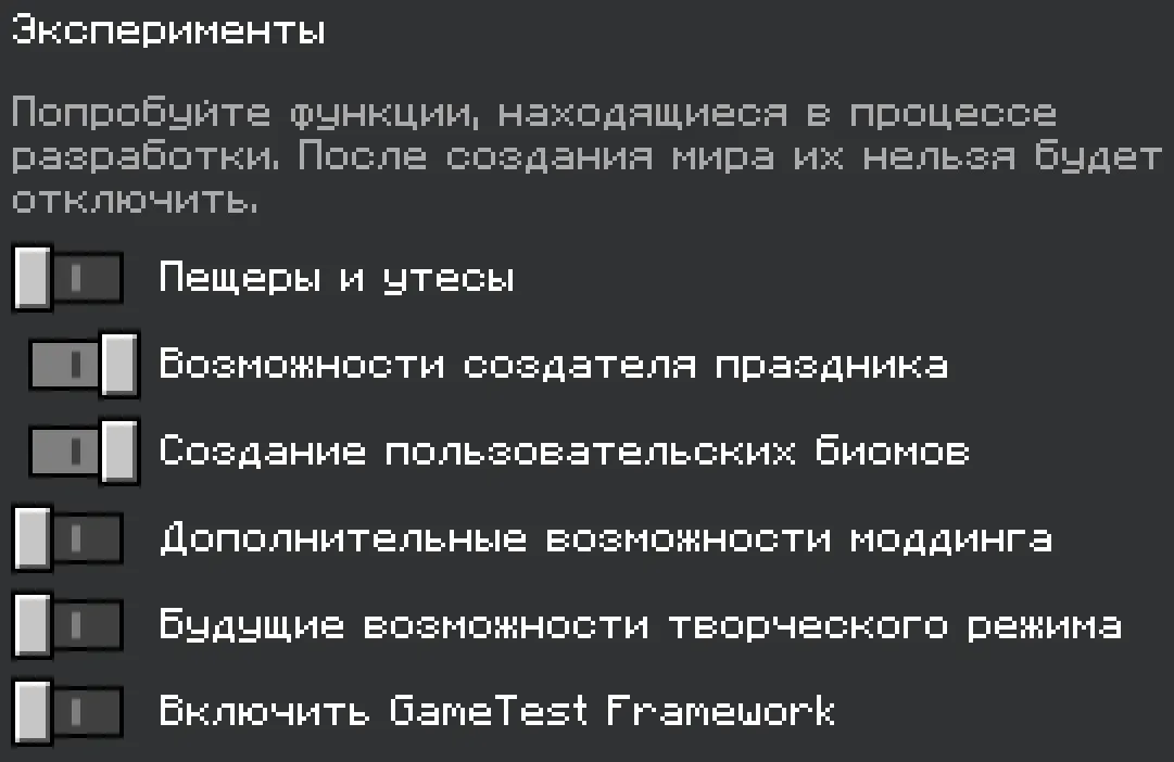 Включите функции экспериментов в настройках мира.