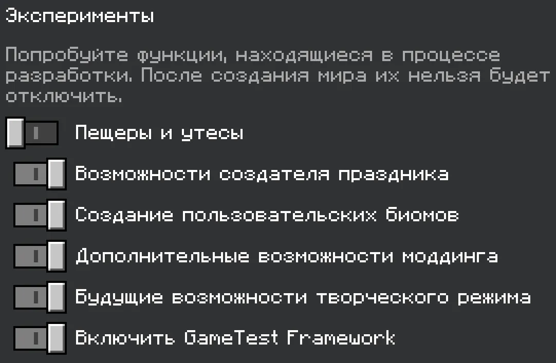 Примечание!. Перед использованием этого дополнения обязательно включите весь экспериментальный игровой процесс, иначе этот мод не будет работать.
