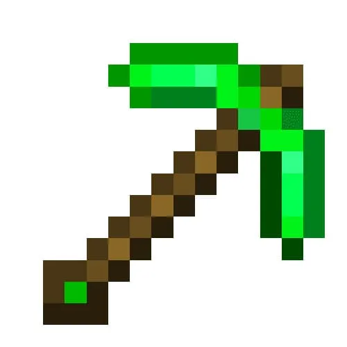 Изумрудная кирка: 5 урона, 836 прочности, 7 скорости. Алмазная кирка: урон 5, прочность 1561, скорость 8.
