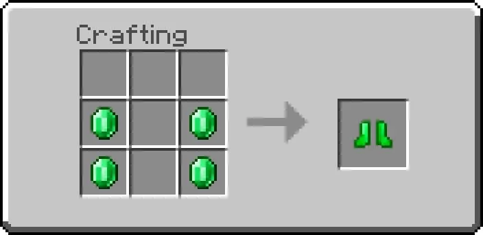 Изумрудные ботинки: 3 единицы защиты, 322 прочности. Алмазные ботинки: 3 планки защиты, 428 единиц прочности.