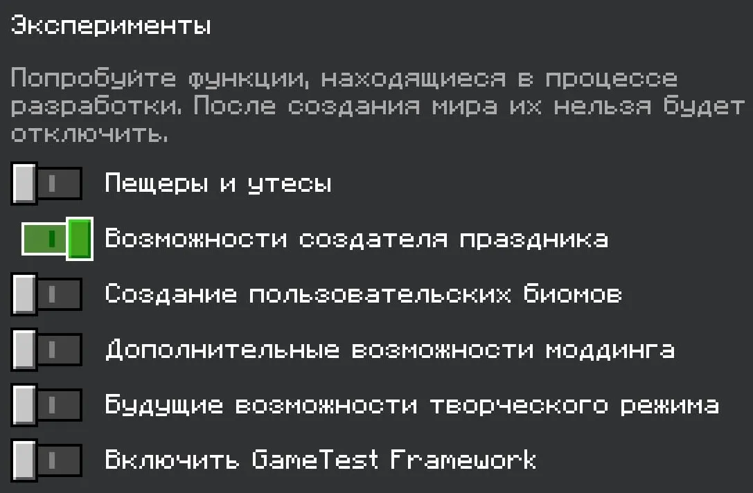 Чтобы мод работал корректно вам нужно включить функцию «Возможности создателя праздника» в настройках создания мира. Затем нужно активировать оба файла — и мод и ресурс пак. Вуаля, оружие можно искать в инвентаре!