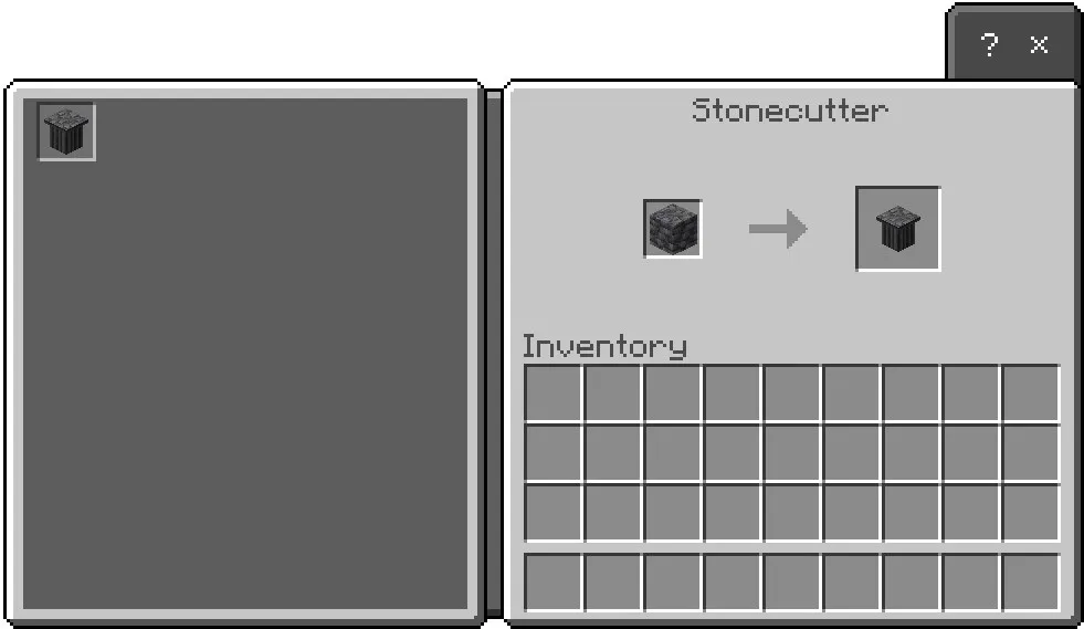 Для создания колонны, поместите материалы в камнерез. Вы получаете по одной колонне за каждый выбранный вами блок материала.