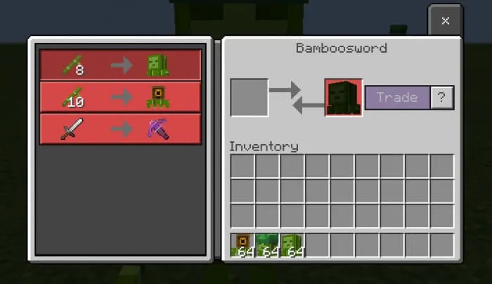 Чтобы сделать яйца спауна этого человекоподобного существа, вам понадобится 5 бамбуков и 1 лук.