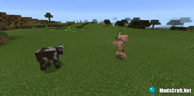 Всё очень просто! Если в диапазоне видимости коровы находится какой-то монстр, то она сразу же начинает его атаковать. При этом атаковать она может одновременно и толпу монстров.