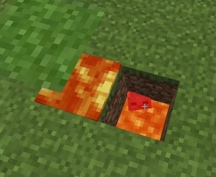 Если моб или игрок наступит на лавовую ловушку, то провалится вниз, где появится лава.