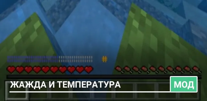 Мод Thirst and Temperature добавит жажду и температуру, усложнив ваше выживание в игровом мире. Вы автоматически будете терять жажду, которую можно восполнить, зайдя в воду. Индикатор жажды отображается выше здоровья, а температура отображается выше вашего уровня. Таким образом, ваше выживание в Майнкрафт станет значительно сложнее. Также факела в руке будут светиться.