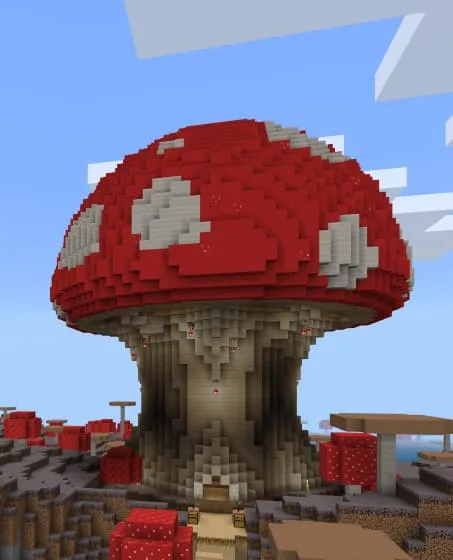 - Мини-грибы выглядит как уменьшенная версия красного гриба, через время из них вырастают грибные храмы