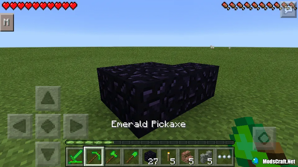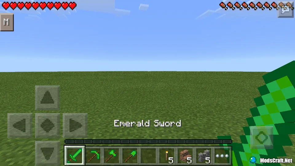 Аддон Emerald Tools добавляет в Minecraft PE несколько новых инструментов, которые вы можете получить на данный момент только в инвентаре творческого режима, с помощью ToolBox или других сторонних программ.