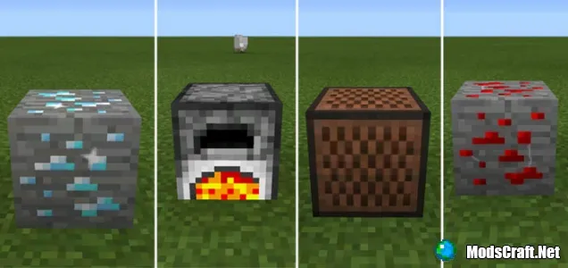 Вот пример четырёх блоков из 19, которые будут иметь анимацию в игре с этим модом. На скриншоте вы не сможете увидеть их анимацию, поэтому чуть ниже мы добавили видео.