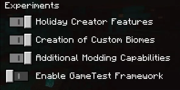 Включите Возможности создателя праздника, Создание пользовательских биомов и Дополнительные возможности моддинга.