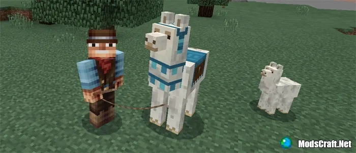 Вам надоели бесполезные свиньи в Minecraft Pocket Edition? Мод Llama заменит свиней на милых лам, которых вы сможете укротить, размножать, ездить на них и хранить в них свои вещи.