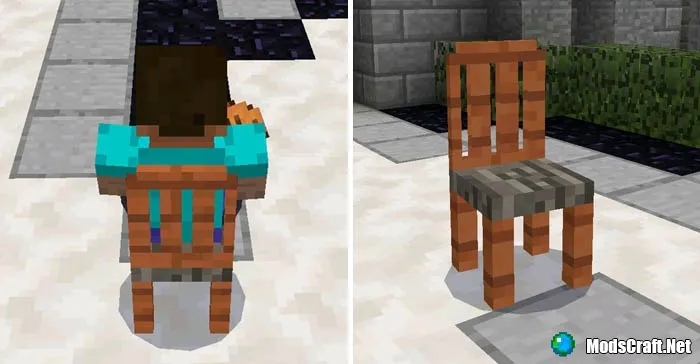More Chairs - это новая модификация для Minecraft Pocket Edition, добавляющая в игру стулья на которых можно даже сидеть! Всего мод добавит 4 типа стульев, которые отличаются цветами и формами. Но стоит отметить то, что данный мод не добавляет новые блоки, а лишь заменяет некоторых мобов.