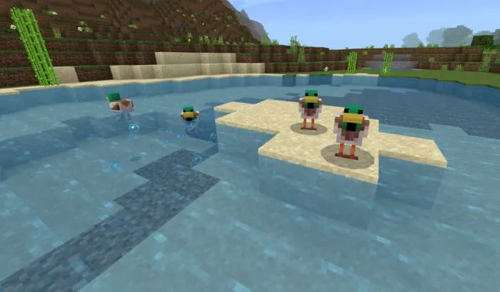 Возле рек можно встретить уток, особых функций и дропа они не имеют, но дополняют биомы своим присутствием.