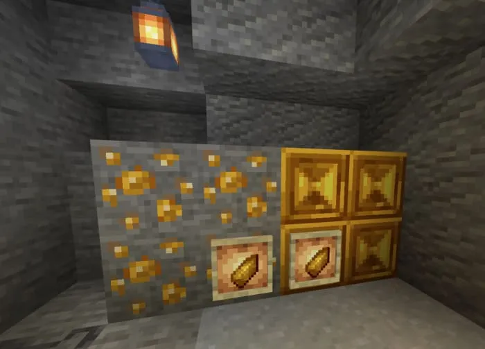 Топазная руда часто генерируется в пещерах. В данный момент не имеет особых функций.