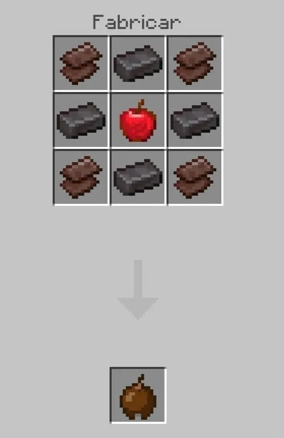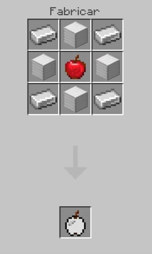 - Для создание нужно 4 железных блока, 4 железных слитка и одно яблоко