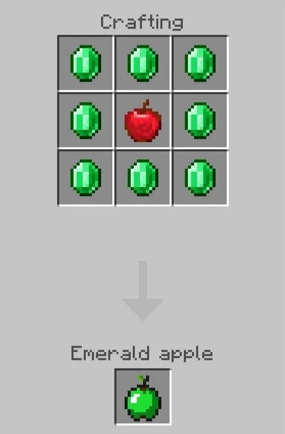 - Для создание понадобится 8 изумрудов и одно яблоко