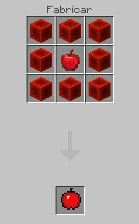 - Для создание нужно 8 блоков красного камня и одного яблока