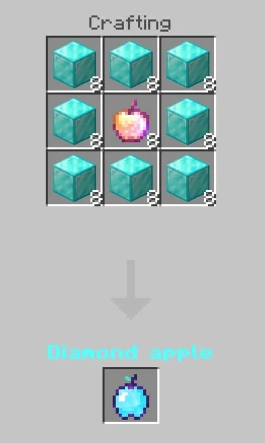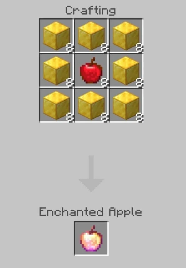 - Создаётся из 8 золотых блоков и зачарованного яблока