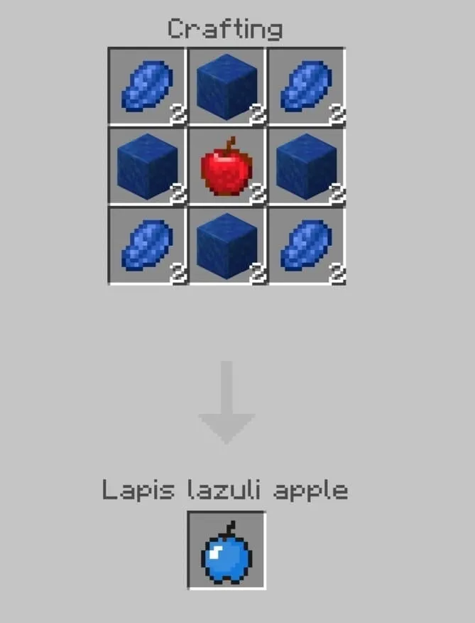 - Для создание нужно 4 лазуритовых блока, 4 лазурита и яблоко