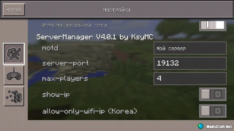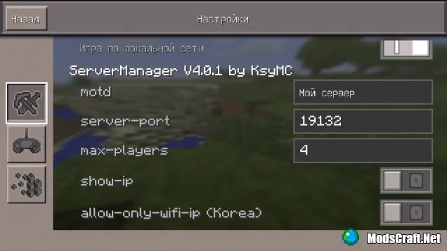 - allow-ony-wifi-ip - не знаю что даёт эта функция, но если её включить, то сервер не будет отображаться у ваших друзей