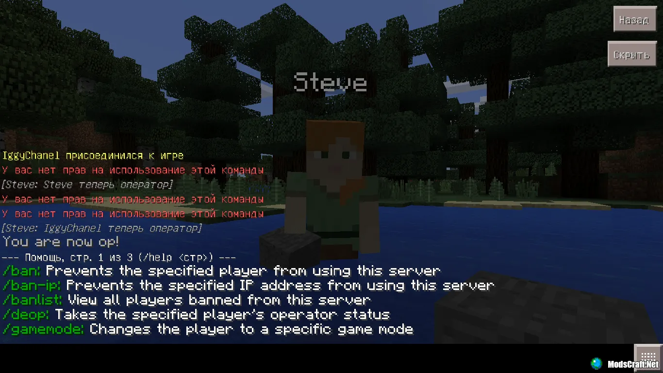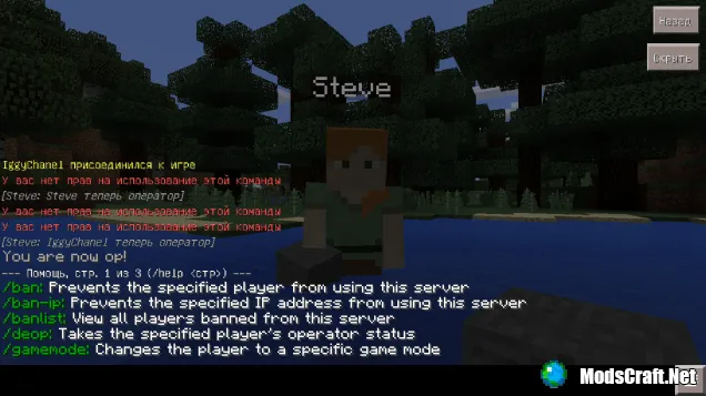 А кроме этого, игроки, которые подключаться к вашему серверу тоже смогут пользоваться стандартными командами, а если вы дадите им оп, то они смогут пользоваться и командами администратора. Нет необходимости в использовании других модов!