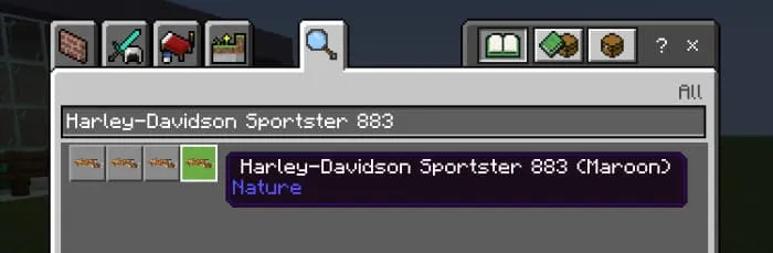 Мод Harley-Davidson Sportster 883 добавляет мотоцикл Sportster в Майнкрафт. Имеет средне-высокую скорость,1 место, расширенную анимацию и расширенные звуки. Рабочие колеса и ручка двигаются. Присутсвуют звуковые эффекты двигателя, такие как при движении и запуске. Реалистичные движения двигателя, он наклоняется вверх/вниз при движении. А скорость двигателя увеличивается со временем.