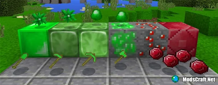 - Изумрудная руда и блок: рубиновая руда и блок