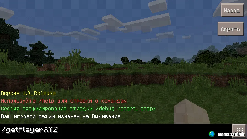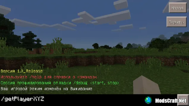 Или например, вы хотите узнать свои координаты. Для этого вам нужно ввести команду в чат /getPlayerXYZ, которая показывает в чате ваши текущие координаты, что полезно в некоторых случаях.