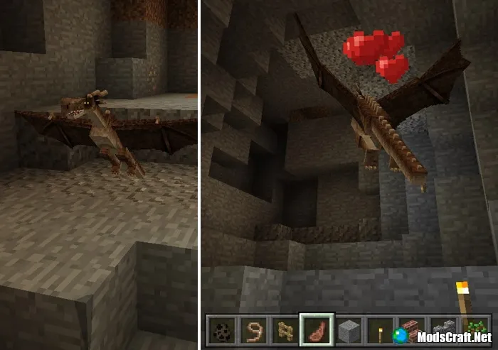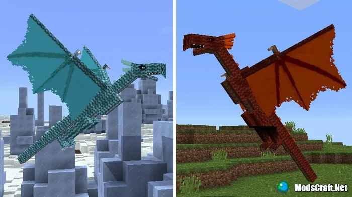 Драконы заменят самых бесполезных мобов МКПЕ - летучих мышей и найти их можно в пещерах. В большинстве случаев драконы рождаются пассивными (они не будут нападать на вас), но есть 17% шанс того, что появится злой дракон, который будет жаждать вашей крови!