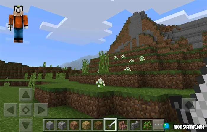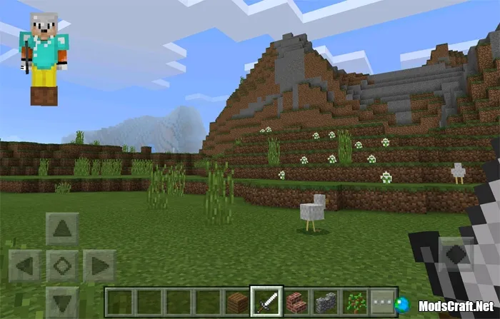 Как только вы войдете в мир MCPE вы сразу же увидите в левом верхнем углу экрана вашего персонажа. Он отображает ваш скин, броню и все, что у вас в руке.
