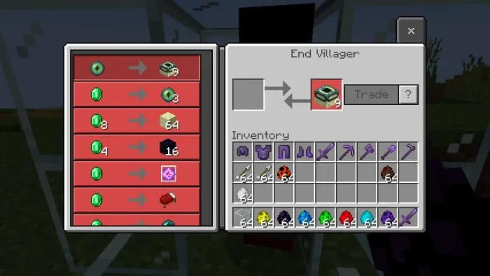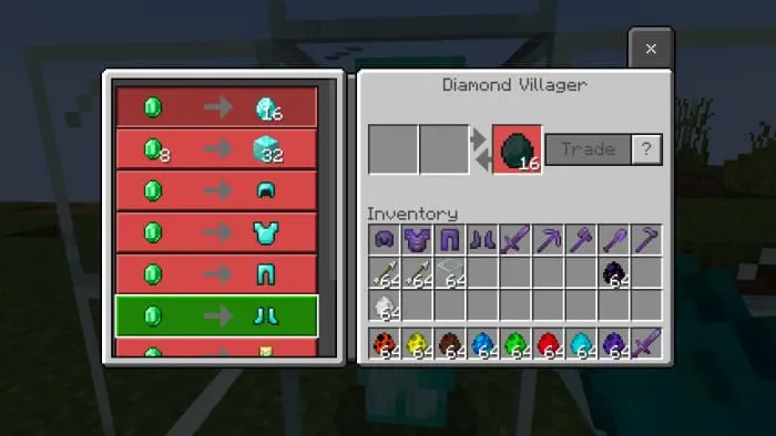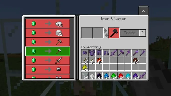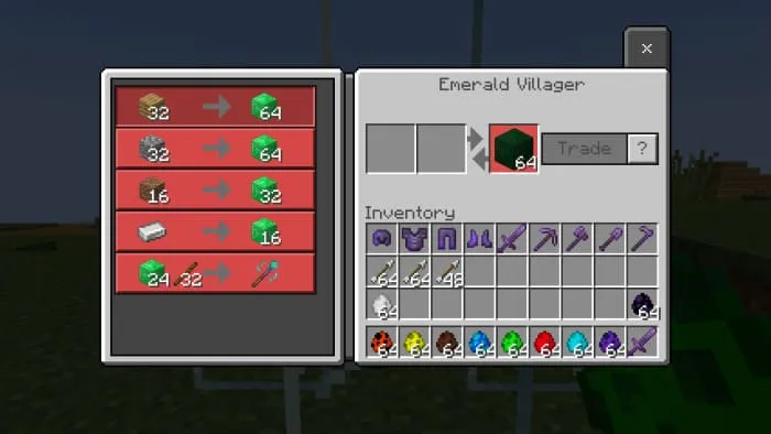 - Можно приобрести посох, который заменяет все блоки на изумруды