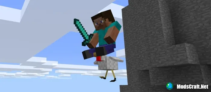 Мод Rideable Chickens позволит вам оседлать курицу в Minecraft Pocket Edition и прокатиться на ней верхом! Особенность заключается в том, что вы не будете получать урон от падений с высоты, а найти куриц можно практически в любом биоме Minecraft.