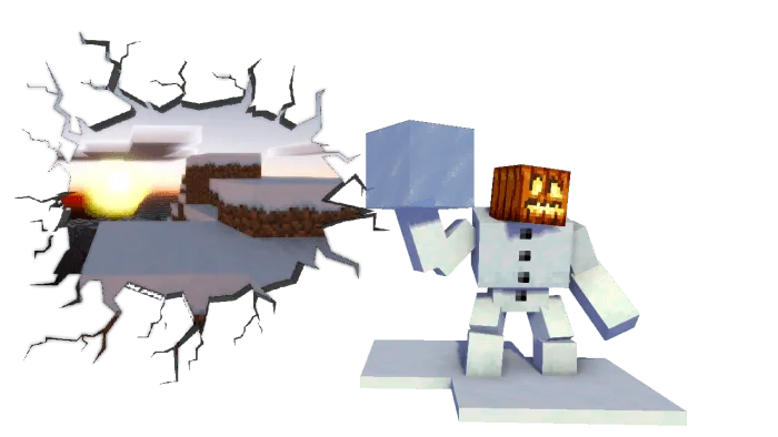 Мутировавший снежный голем: представляет собой усиленную версию снежного голема и может превращать воду в лёд. Вы также можете использовать ножницы, чтобы убрать с него тыкву.
