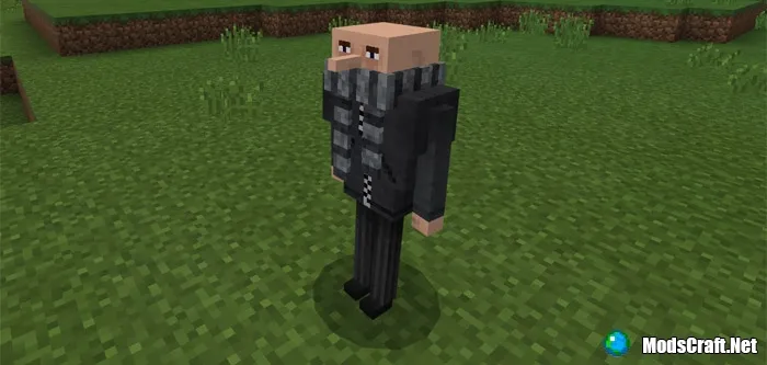 В данном моде на Майнкрафт ПЕ Грю дружелюбен по отношению к игрокам и его даже можно приручить с помощью лука. Своего хозяина он будет защищать с помощью пушки левитационных лучей.