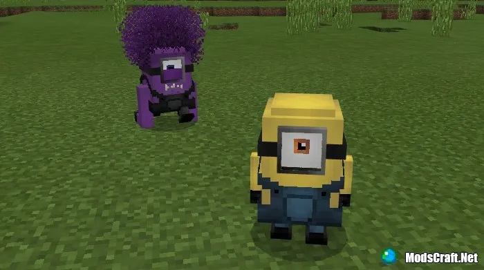 Миньоны - это желтые, небольшие, цилиндрические существа, которые известны благодаря мультфильму под названием Миньоны. Мод «Minions» добавит в Minecraft Pocket Edition этих милых желтых существ, которых Вы даже сможете приручить и давать им различные задачи.