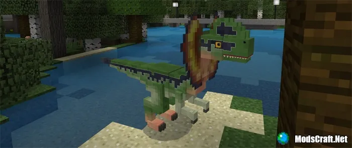 Дилофозавр в этом дополнении сделан точно также, как парке Юрского периода. Однако, реальный динозавр, который жил на Земле, не совсем похож на него. В этом моде у него есть способность плеваться ядом.