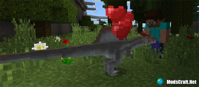 Вы можете приручить Спинозавра, кормя его мясом. Прирученный динозавр будет автоматически ходить за вами и защищать вас от враждебных мобов.